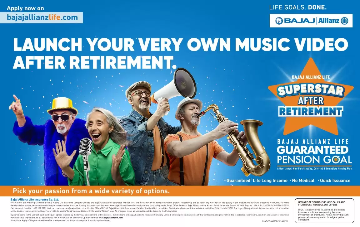 Commenting on the new campaign launch, Mr. Chandramohan Mehra, Chief Marketing Officer, Bajaj Allianz Life said, “Aligned to the larger life-goal-enabling purpose of the brand, the aim of the initiative is to provide a platform that lets individuals pursue post-retirement life-goals, and showcase their latent talent to the world. The initiative meaningfully engages with the customers, allowing them to discover and fulfill their passions during their second innings of life.”
