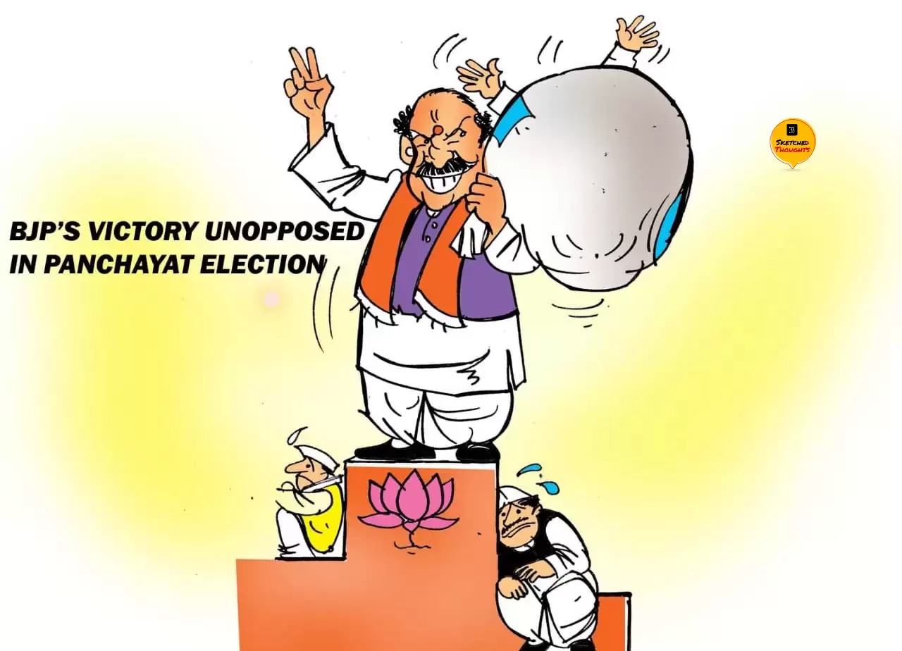 Sketched Thoughts – Bjp’s Victory Unopposed In Panchayat Election !! Sketched ThoughtsSketched Thoughts – Bjp’s Victory Unopposed In Panchayat Election !! By: Amit Bishnoi Date: June 29, 2021 Previous articleModi holds high level meeting on Jammu drone attackNext articleOn blocking Prasad, Tharoor’s accounts, written reply has been sought from Twitter in 2 days Share post: FacebookTwitterPinterestWhatsApp SubscribeI want inI've read and accept the Privacy Policy. Popular Pakistan Shuts Borders After Deadly Clash With Afghanistan; Kabul Claims 58 Pakistani Soldiers Killed KISNA Expands Retail Presence in Uttar Pradesh with Meerut Launch Stampede at Vijay’s Rally in Tamil Nadu Kills 40, Injures Over 120 India Refuses Asia Cup Trophy Over Pakistan Link, Sparks Big Row Trump Announces New Tariffs on Drugs, Trucks, and Furniture More like thisRelated